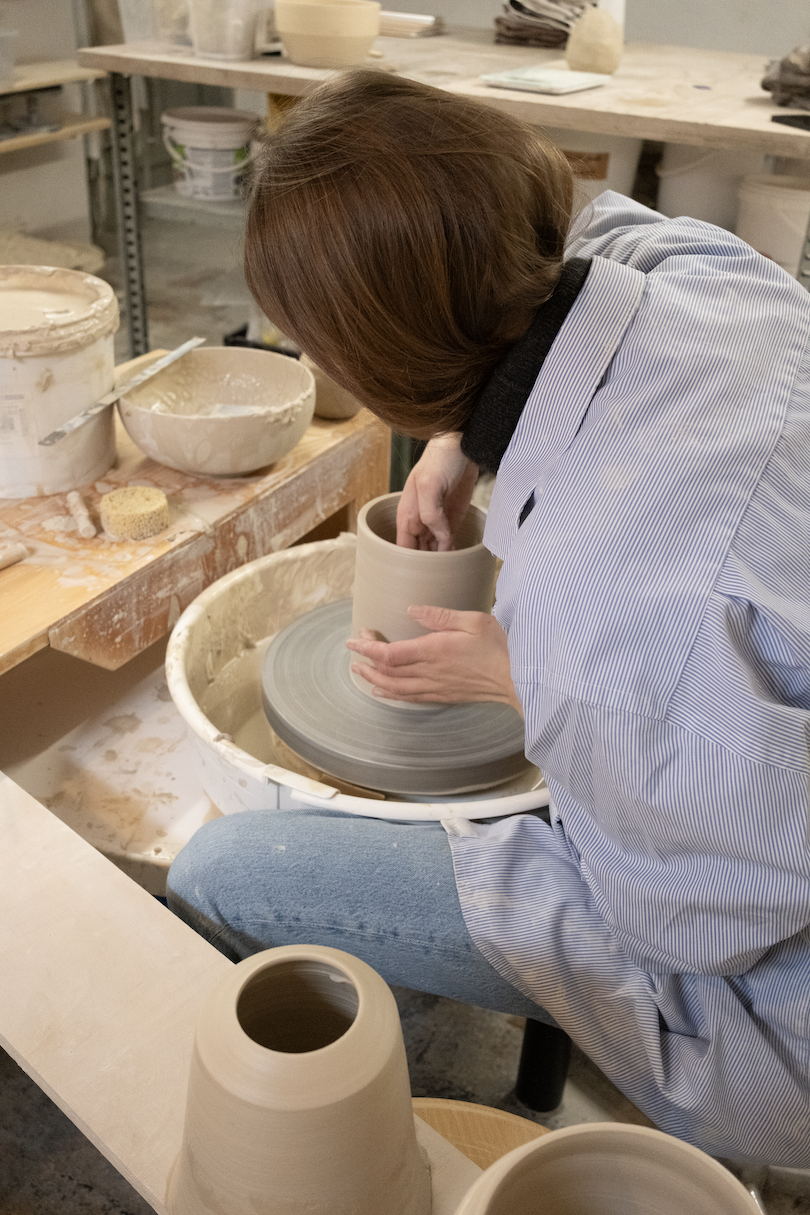 Am besten hast du bereits einen Anfängerkurs bei mir besucht und bist mit der Werkstatt und dem Umgang mit der Drehscheibe vertraut. Während der offenen Werkstatt kannst du die Werkstatt und die damit verbundene Infrastruktur zum selbstständigen Arbeiten nutzen. Alles was du benötigst wird dir im Studio zur Verfügung gestellt: Töpferscheiben, Werkzeuge, Schwämme, Ton, Schürzen, etc.